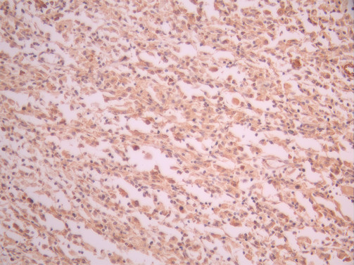 IHC image of CSB-RA246457A0HU diluted at 1:100 and staining in paraffin-embedded human cervical cancer performed on a Leica BondTM system. After dewaxing and hydration, antigen retrieval was mediated by high pressure in a citrate buffer (pH 6.0). Section was blocked with 10% normal goat serum 30min at RT. Then primary antibody (1% BSA) was incubated at 4°C overnight. The primary is detected by a Goat anti-rabbit polymer IgG labeled by HRP and visualized using 0.05% DAB.