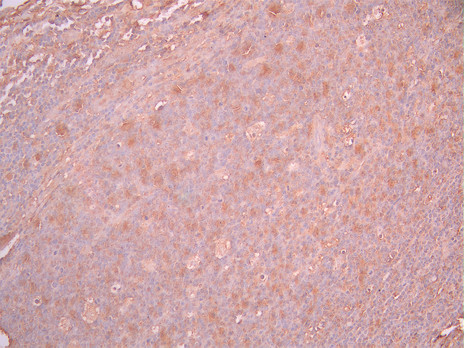 IHC image of CSB-RA028490A0HU diluted at 1:100 and staining in paraffin-embedded human liver cancer performed on a Leica BondTM system. After dewaxing and hydration, antigen retrieval was mediated by high pressure in a citrate buffer (pH 6.0). Section was blocked with 10% normal goat serum 30min at RT. Then primary antibody (1% BSA) was incubated at 4°C overnight. The primary is detected by a Goat anti-rabbit polymer IgG labeled by HRP and visualized using 0.05% DAB.