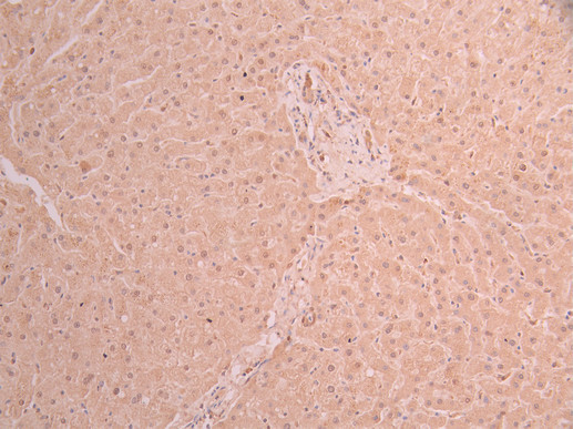 IHC image of CSB-RA912122A0HU diluted at 1:100 and staining in paraffin-embedded human liver tissue performed on a Leica BondTM system. After dewaxing and hydration, antigen retrieval was mediated by high pressure in a citrate buffer (pH 6.0). Section was blocked with 10% normal goat serum 30min at RT. Then primary antibody (1% BSA) was incubated at 4°C overnight. The primary is detected by a Goat anti-rabbit polymer IgG labeled by HRP and visualized using 0.05% DAB.