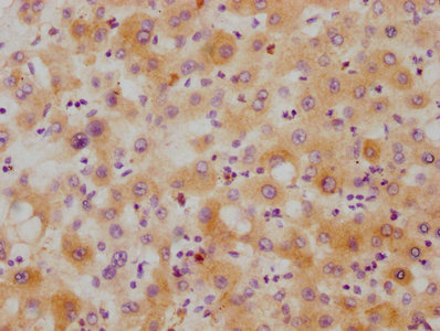 IHC image of CSB-RA010124A0HU diluted at 1:215 and staining in paraffin-embedded human liver tissue performed on a Leica BondTM system. After dewaxing and hydration, antigen retrieval was mediated by high pressure in a citrate buffer (pH 6.0). Section was blocked with 10% normal goat serum 30min at RT. Then primary antibody (1% BSA) was incubated at 4℃ overnight. The primary is detected by a biotinylated secondary antibody and visualized using an HRP conjugated SP system.