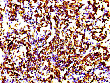IHC image of CSB-RA010429A0HU diluted at 1:100 and staining in paraffin-embedded human lung cancer performed on a Leica BondTM system. After dewaxing and hydration, antigen retrieval was mediated by high pressure in a citrate buffer (pH 6.0). Section was blocked with 10% normal goat serum 30min at RT. Then primary antibody (1% BSA) was incubated at 4℃ overnight. The primary is detected by a biotinylated secondary antibody and visualized using an HRP conjugated SP system.