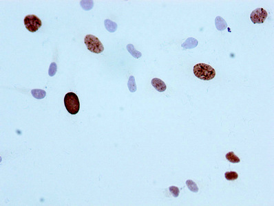Immunocytochemistry analysis of CSB-RA010418A10phHU diluted at 1:100 and staining in Hela cells performed on a Leica BondTM system. After dewaxing and hydration, antigen retrieval was mediated by high pressure in a citrate buffer (pH 6.0). Section was blocked with 10% normal goat serum 30min at RT. Then primary antibody (1% BSA) was incubated at 4℃ overnight. The primary is detected by a biotinylated secondary antibody and visualized using an HRP conjugated SP system.