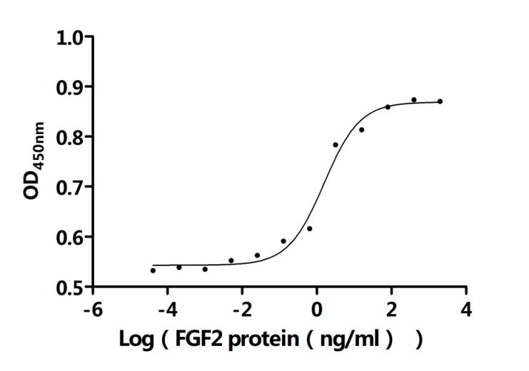 功能:Acts as a ligand for FGFR1, FGFR2, FGFR3 and FGFR4. Also acts as an integrin ligand which is required for FGF2 signaling. Binds to integrin ITGAV:ITGB3. Plays an important role in the regulation of cell survival, cell division, cell differentiation and cell migration. Functions as a potent mitogen in vitro. Can induce angiogenesis. Mediates phosphorylation of ERK1/2 and thereby promotes retinal lens fiber differentiation.