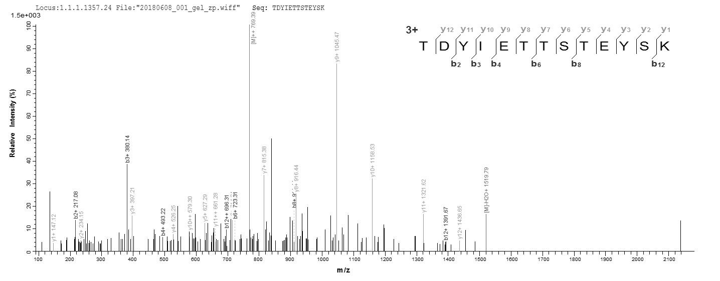 Based on the SEQUEST from database of E.coli host and target protein, the LC-MS/MS Analysis result of CSB-EP314820CMB could indicate that this peptide derived from E.coli-expressed Clostridium perfringens (strain 13 / Type A) pfo.