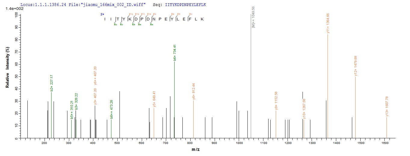 Based on the SEQUEST from database of E.coli host and target protein, the LC-MS/MS Analysis result of CSB-EP016023HU could indicate that this peptide derived from E.coli-expressed Homo sapiens (Human) NPR1.