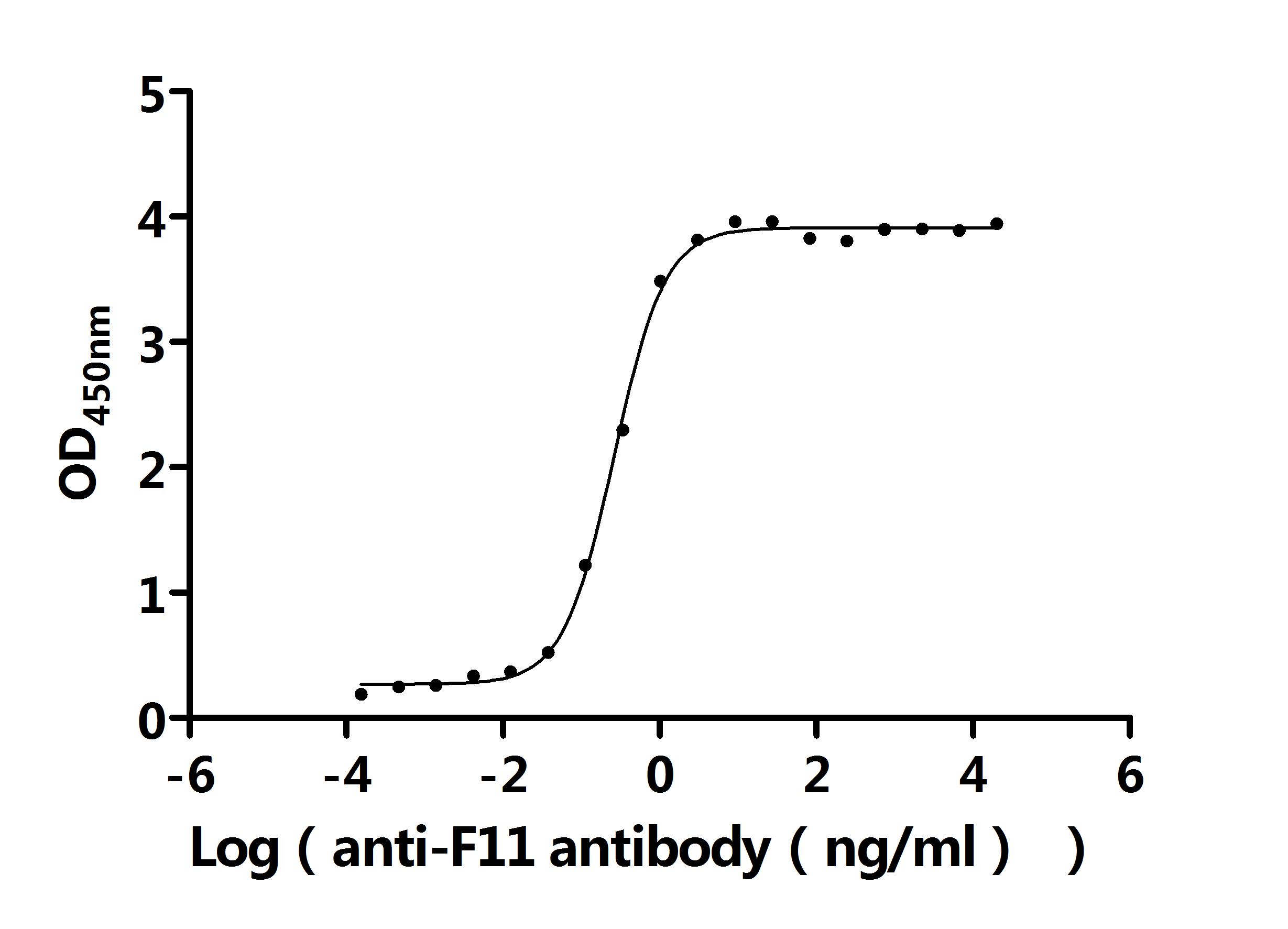 Measured by its binding ability in a functional ELISA. Immobilized Human F11 at 2 μg/ml can bind Anti-F11 recombinant antibody (CSB-RA007916MA1HU). The EC50 is 0.2442-0.2820 ng/mL. Biological Activity Assay -