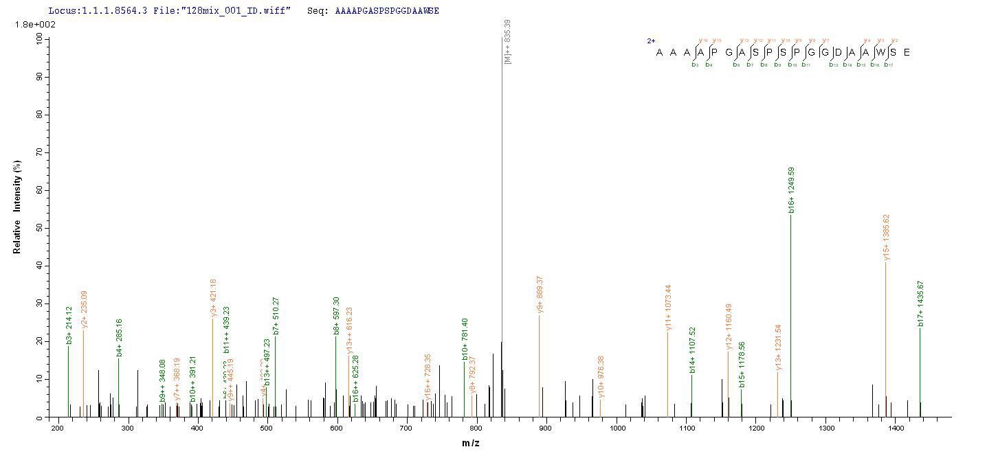 Based on the SEQUEST from database of E.coli host and target protein, the LC-MS/MS Analysis result of CSB-EP015032HU could indicate that this peptide derived from E.coli-expressed Homo sapiens (Human) MSH6.
