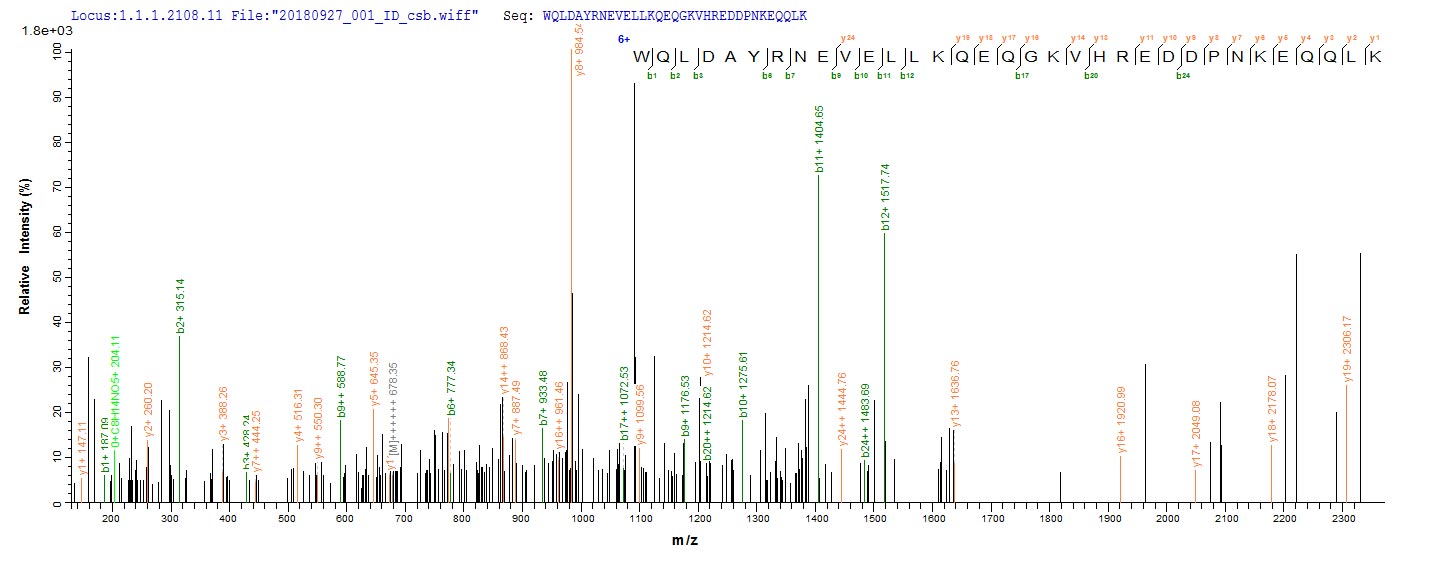 • Based on the SEQUEST from database of E.coli host and target protein, the LC-MS/MS Analysis result of CSB-EP007677HU2 could indicate that this peptide derived from E.coli-expressed Homo sapiens (Human) ENOX2.