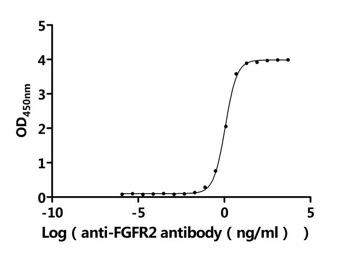 Measured by its binding ability in a functional ELISA. Immobilized Human FGFR2 at 2 μg/ml can bind Anti-FGFR2 recombinant antibody (CSB-RA008645MA1HU). The EC50 is 1.066-1.203 ng/mL.