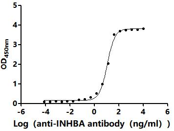 Measured by its binding ability in a functional ELISA.Immobilized Human INHBA at 2 μg/ml can bind Anti-INHBA recombinant antibody (CSB-RA011719MA1HU). The EC50 is 10.28-12.68 ng/mL. Biological Activity Assay