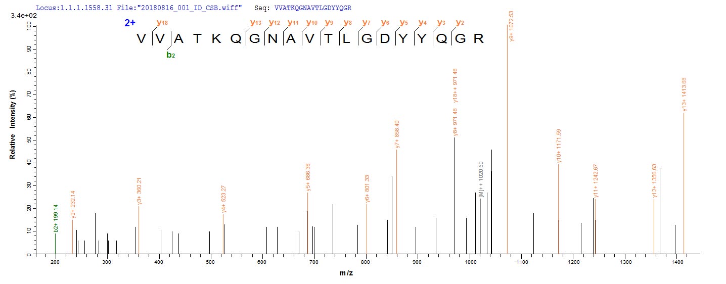 Based on the SEQUEST from database of E.coli host and target protein, the LC-MS/MS Analysis result of CSB-EP801252HU could indicate that this peptide derived from E.coli-expressed Homo sapiens (Human) LSR.