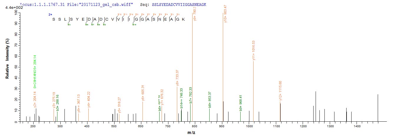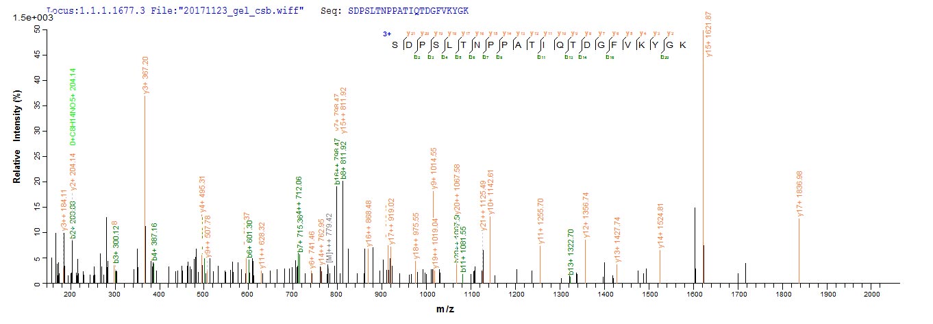 Based on the SEQUEST from database of E.coli host and target protein, the LC-MS/MS Analysis result of CSB-EP014783HUa0 could indicate that this peptide derived from E.coli-expressed Homo sapiens (Human) MRC1.