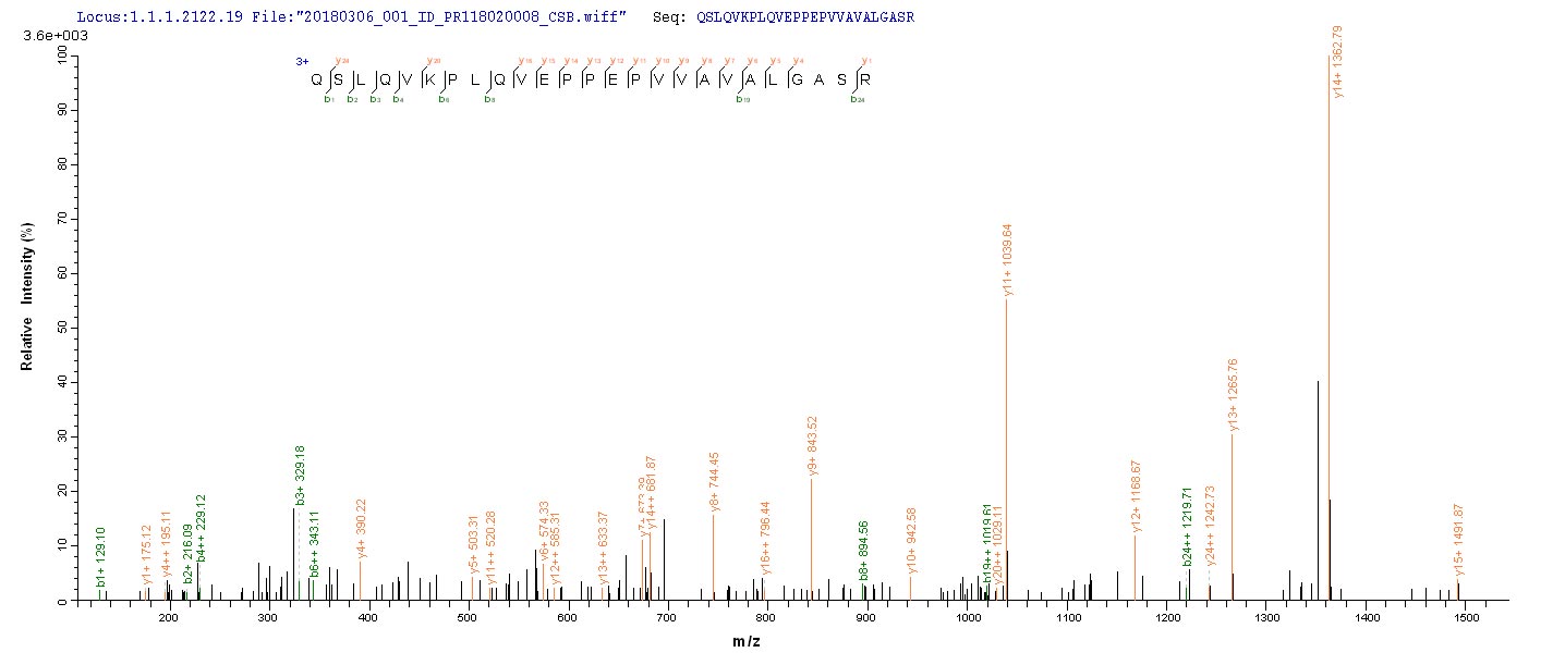 Based on the SEQUEST from database of Mammalian Cell host and target protein, the LC-MS/MS Analysis result of CSB-MP618776HU could indicate that this peptide derived from Mammalian Cell-expressed Homo sapiens (Human) MADCAM1.