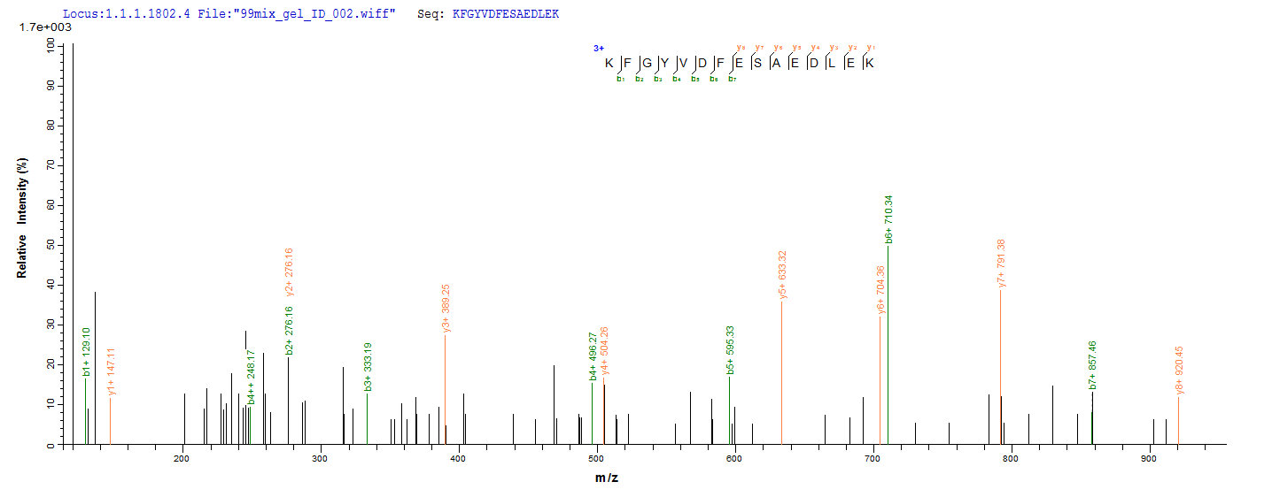 Based on the SEQUEST from database of Yeast host and target protein, the LC-MS/MS Analysis result of CSB-YP015535HU could indicate that this peptide derived from Yeast-expressed Homo sapiens (Human) NCL.