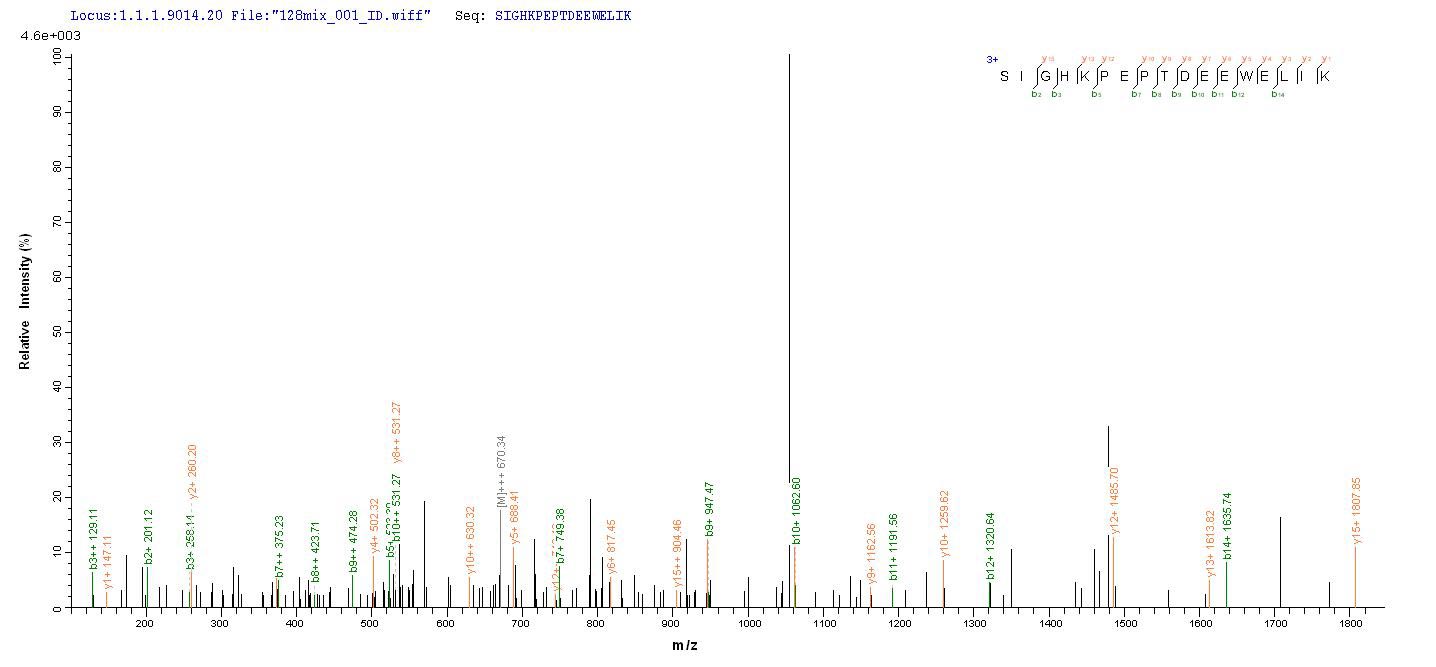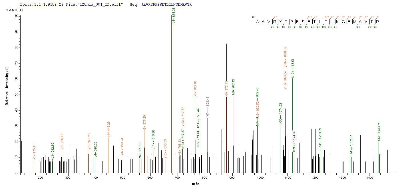 Based on the SEQUEST from database of E.coli host and target protein, the LC-MS/MS Analysis result of CSB-EP023514HU could indicate that this peptide derived from E.coli-expressed Homo sapiens (Human) THRB.