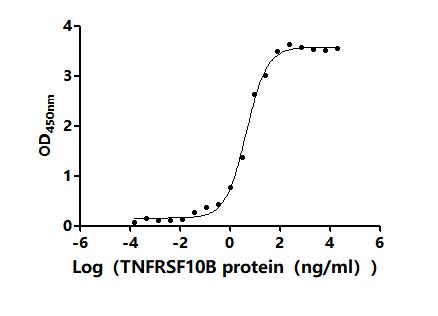 生物活性:Measured by its binding ability in a functional ELISA. Immobilized Human TNFSF10 at 4 μg/mL can bind Human TNFRSF10B (CSB-MP023965HU1d9). The EC50 is 3.897-5.215 ng/mL.