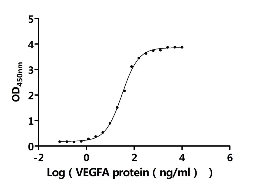 Measured by its binding ability in a functional ELISA. Immobilized Human VEGFA protein at 2 μg/ml can bind Anti-VEGFA recombinant antibody (CSB-RA025833MA2HU). The EC50 is 0.6797-0.8382 ng/mL. Biological Activity Assay -