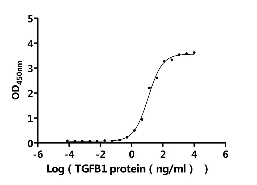 Measured by its binding ability in a functional ELISA. Immobilized Macaca fascicularis ITGAV&ITGB6 at 2 μg/ml can bind Macaca mulatta TGFB1 (CSB-MP6752MOW(A4)(M)). The EC50 is 8.899-14.82 ng/mL. -
