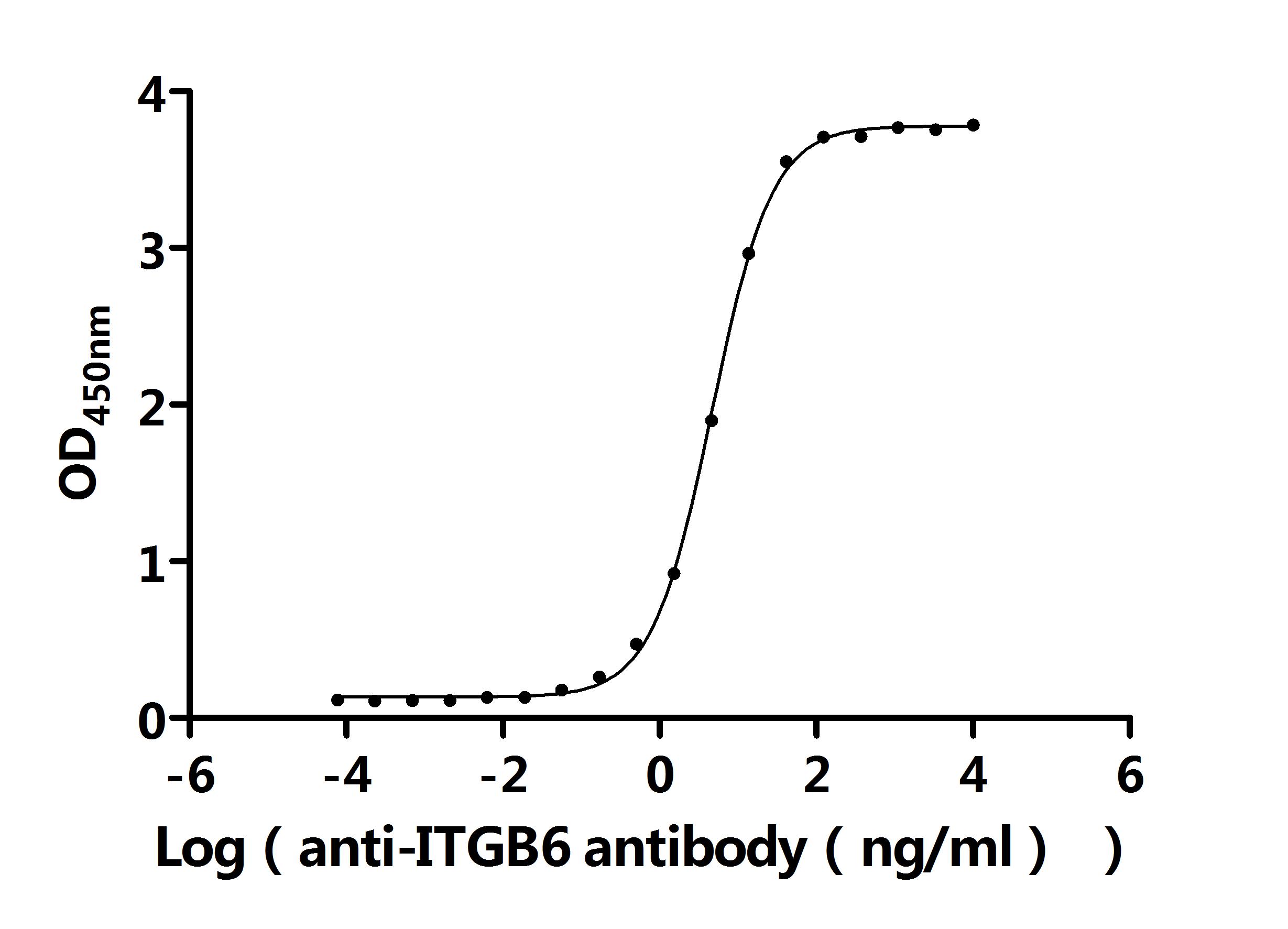 Measured by its binding ability in a functional ELISA. Immobilized Macaca fascicularis ITGAV&ITGB6 at 2 μg/ml can bind Anti-ITGB6 recombinant antibody(CSB-RA011890MA1HU). The EC50 is 4.251-5.103 ng/mL.