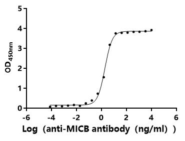 Measured by its binding ability in a functional ELISA.Immobilized Macaca fascicularis at 2 μg/ml can bind Anti-MICA/B recombinant antibody (CSB-RA56059MA1HU).The EC50 is 1.749-2.065 ng/mL. Biological Activity Assay