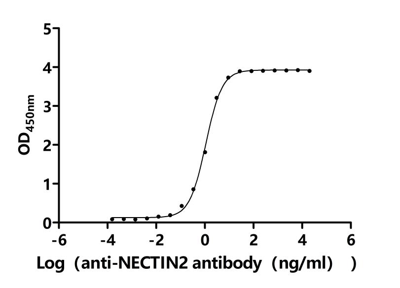 Measured by its binding ability in a functional ELISA.Immobilized Macaca fascicularis NECTIN2 at 2 μg/ml can bind Anti-NECTIN2 recombinant antibody(CSB-RA835690MA1HU). The EC50 is 1.011-1.193 ng/mL. Biological Activity Assay -
