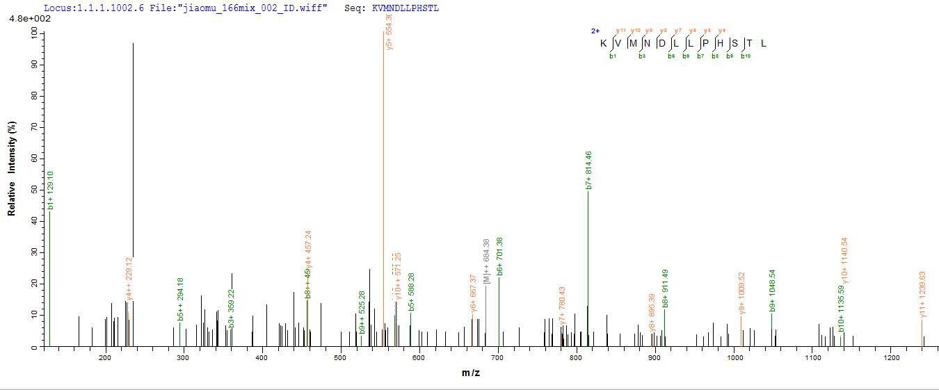 Based on the SEQUEST from database of Yeast host and target protein, the LC-MS/MS Analysis result of CSB-YP011050MQG could indicate that this peptide derived from Yeast-expressed Marmota monax (Woodchuck) IFNG.