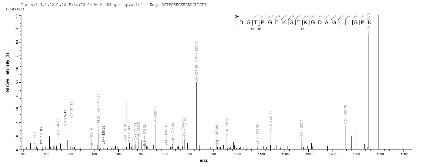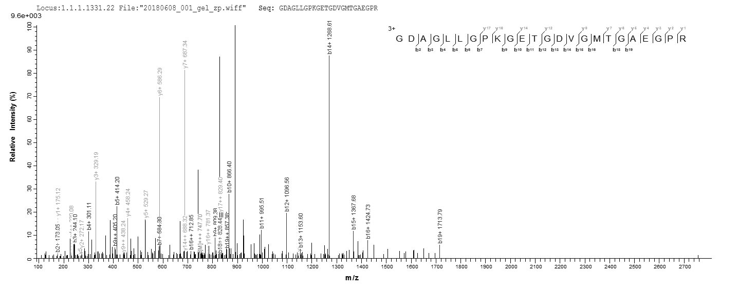 Based on the SEQUEST from database of E.coli host and target protein, the LC-MS/MS Analysis result of CSB-EP723362MO could indicate that this peptide derived from E.coli-expressed Mus musculus (Mouse) Adipoq.