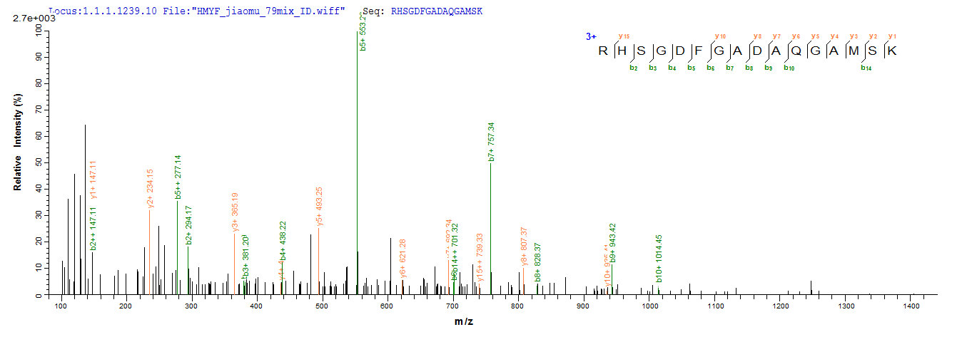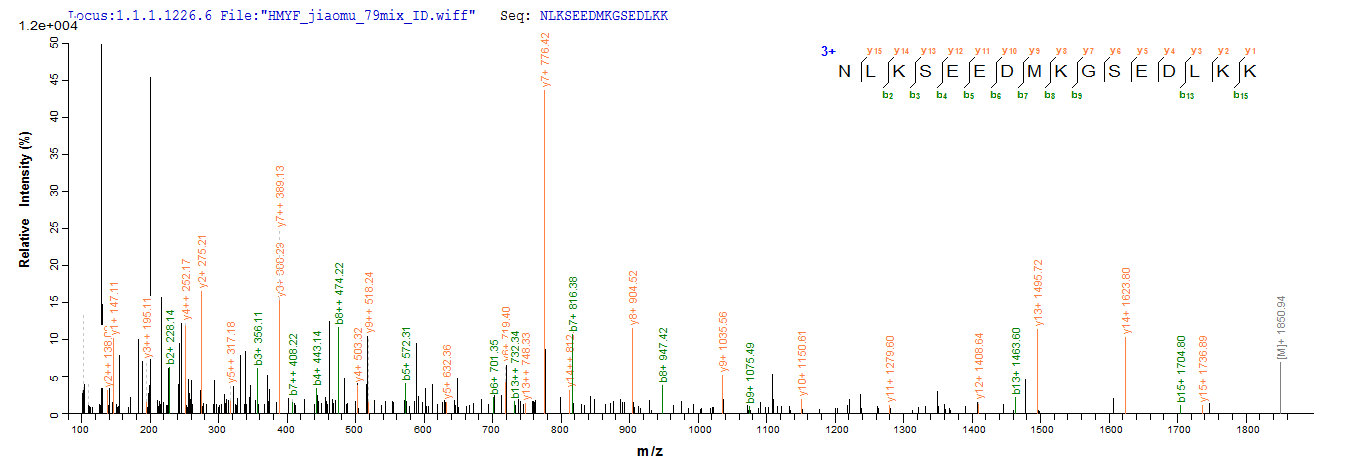• Based on the SEQUEST from database of E.coli host and target protein, the LC-MS/MS Analysis result of CSB-EP013529MO could indicate that this peptide derived from E.coli-expressed Mus musculus (Mouse) Mb.
