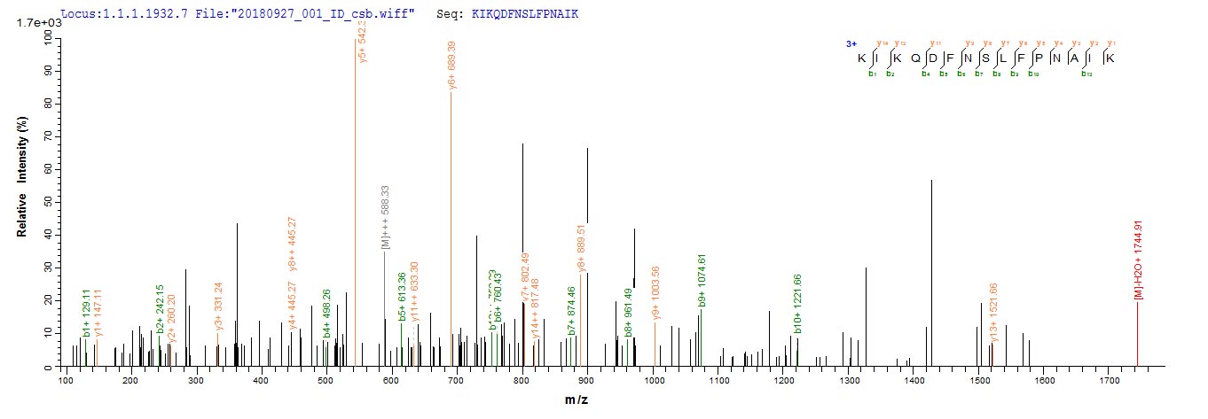 Based on the SEQUEST from database of E.coli host and target protein, the LC-MS/MS Analysis result of CSB-EP019573MO could indicate that this peptide derived from E.coli-expressed Mus musculus (Mouse) Retn.