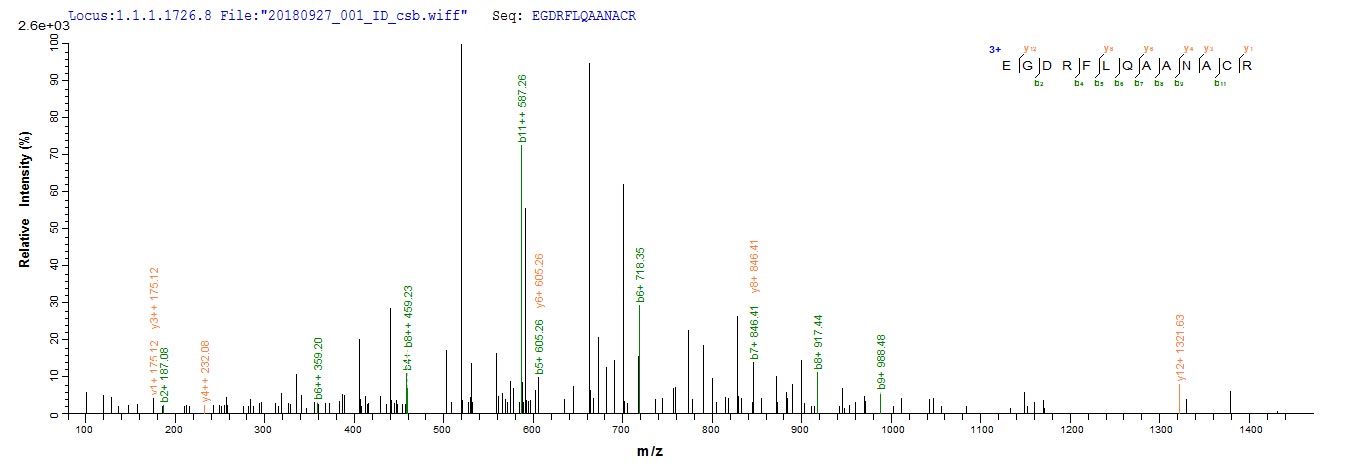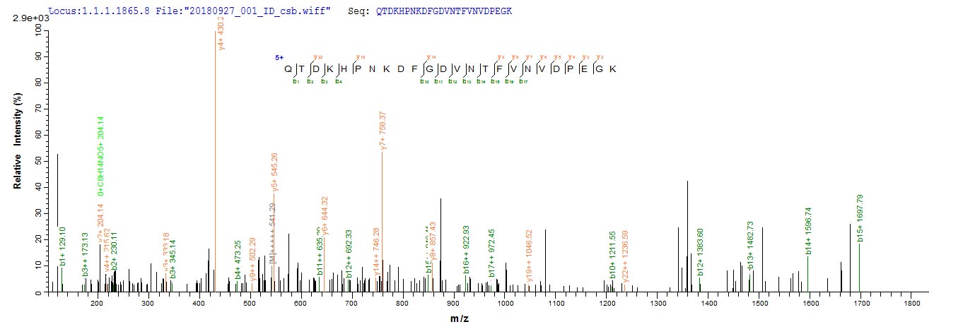 • Based on the SEQUEST from database of E.coli host and target protein, the LC-MS/MS Analysis result of CSB-EP511311ETF could indicate that this peptide derived from E.coli-expressed Penaeus monodon (Giant tiger prawn) AK.