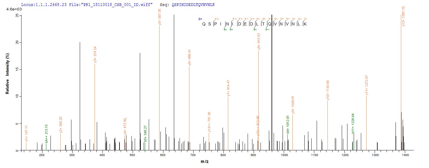 Based on the SEQUEST from database of Yeast host and target protein, the LC-MS/MS Analysis result of CSB-YP019068HU could indicate that this peptide derived from Yeast-expressed Homo sapiens (Human) PTPRZ1.