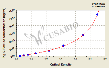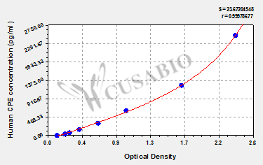 通過線性范圍來計算出實際的檢測樣本值,定量試劑盒標準曲線的相關系數R大于0.99。以CSB-E07270h(人脂聯素(ADP)ELISA Kit)為例的標準曲線。