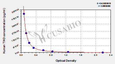 通過線性范圍來計算出實際的檢測樣本值,定量試劑盒標準曲線的相關系數R大于0.99。以CSB-E07270h(人脂聯素(ADP)ELISA Kit)為例的標準曲線。