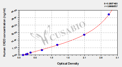 通過線性范圍來計算出實際的檢測樣本值,定量試劑盒標準曲線的相關系數R大于0.99。以CSB-E07270h(人脂聯素(ADP)ELISA Kit)為例的標準曲線。