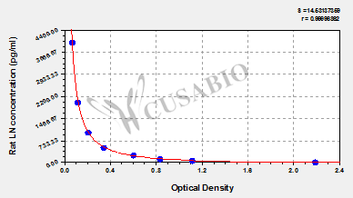 通過線性范圍來計算出實際的檢測樣本值,定量試劑盒標準曲線的相關系數R大于0.99。以CSB-E07270h(人脂聯素(ADP)ELISA Kit)為例的標準曲線。