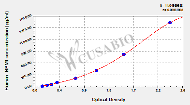 通過線性范圍來計算出實際的檢測樣本值,定量試劑盒標準曲線的相關系數R大于0.99。以CSB-E07270h(人脂聯素(ADP)ELISA Kit)為例的標準曲線。