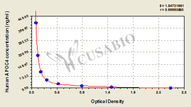 通過線性范圍來計算出實際的檢測樣本值,定量試劑盒標準曲線的相關系數R大于0.99。以CSB-E07270h(人脂聯素(ADP)ELISA Kit)為例的標準曲線。