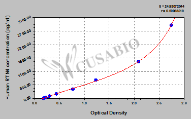 通過線性范圍來計(jì)算出實(shí)際的檢測(cè)樣本值,定量試劑盒標(biāo)準(zhǔn)曲線的相關(guān)系數(shù)R大于0.99。以CSB-E07270h(人脂聯(lián)素(ADP)ELISA Kit)為例的標(biāo)準(zhǔn)曲線。