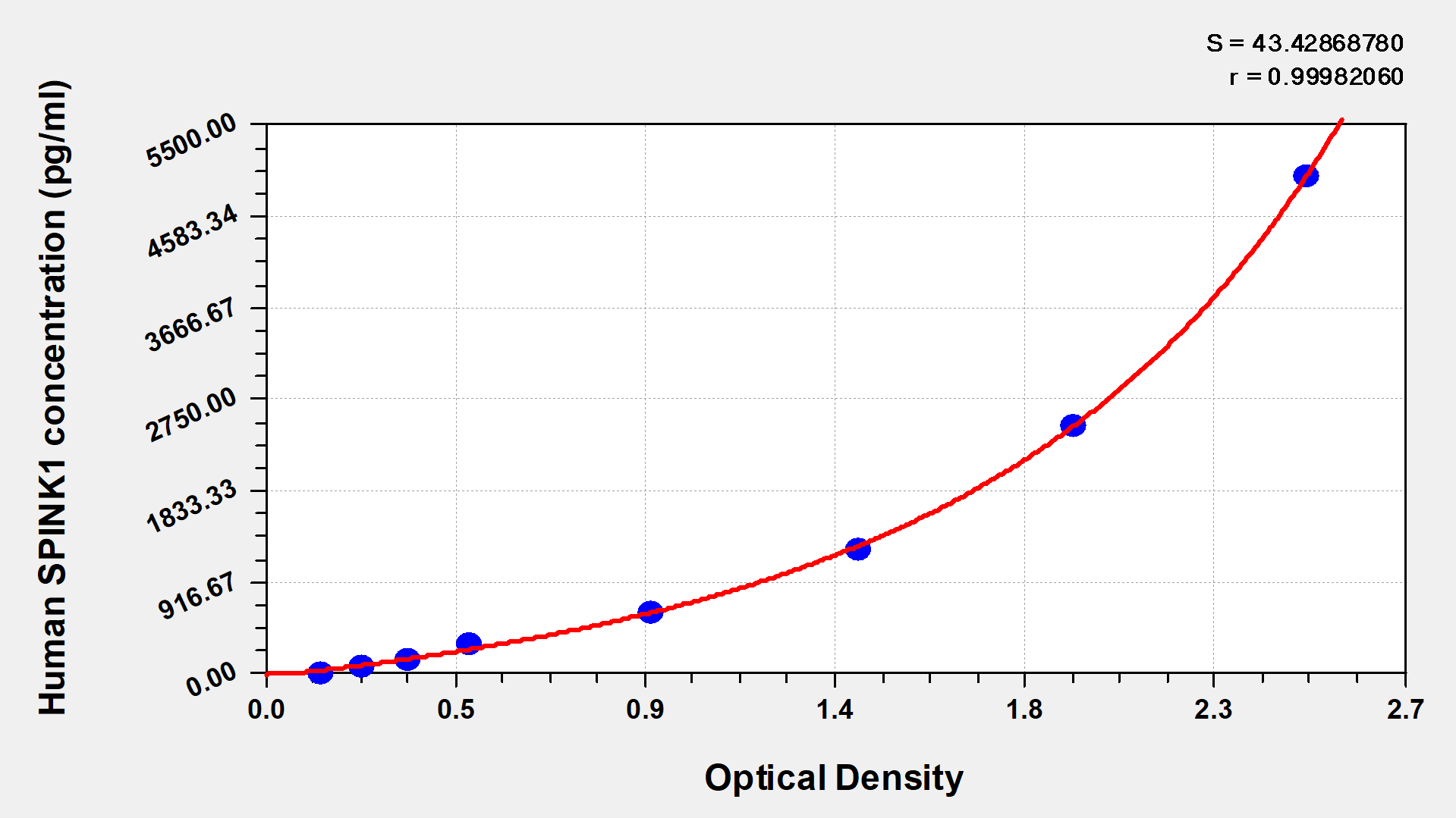 通過線性范圍來計算出實際的檢測樣本值,定量試劑盒標準曲線的相關系數R大于0.99。以CSB-E07270h(人脂聯素(ADP)ELISA Kit)為例的標準曲線。