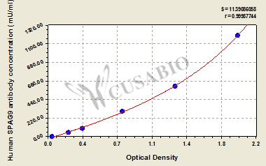 通過線性范圍來計算出實際的檢測樣本值,定量試劑盒標準曲線的相關系數R大于0.99。以CSB-E07270h(人脂聯素(ADP)ELISA Kit)為例的標準曲線。
