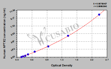通過線性范圍來計算出實際的檢測樣本值,定量試劑盒標(biāo)準(zhǔn)曲線的相關(guān)系數(shù)R大于0.99。以CSB-E07270h(人脂聯(lián)素(ADP)ELISA Kit)為例的標(biāo)準(zhǔn)曲線。