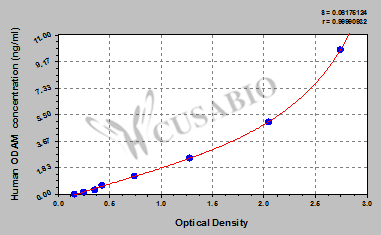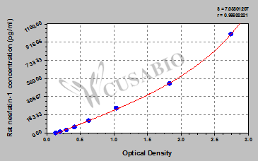 通過(guò)線性范圍來(lái)計(jì)算出實(shí)際的檢測(cè)樣本值,定量試劑盒標(biāo)準(zhǔn)曲線的相關(guān)系數(shù)R大于0.99。以CSB-E07270h(人脂聯(lián)素(ADP)ELISA Kit)為例的標(biāo)準(zhǔn)曲線。