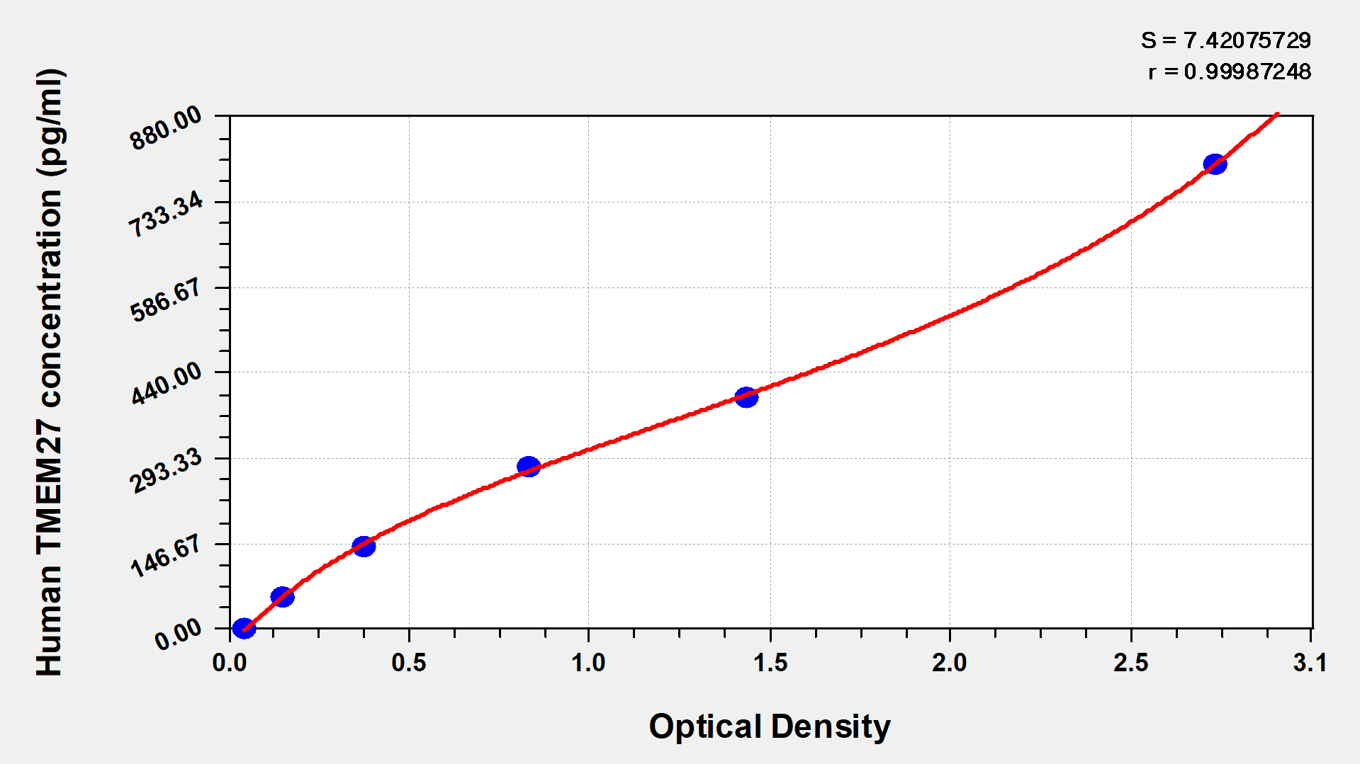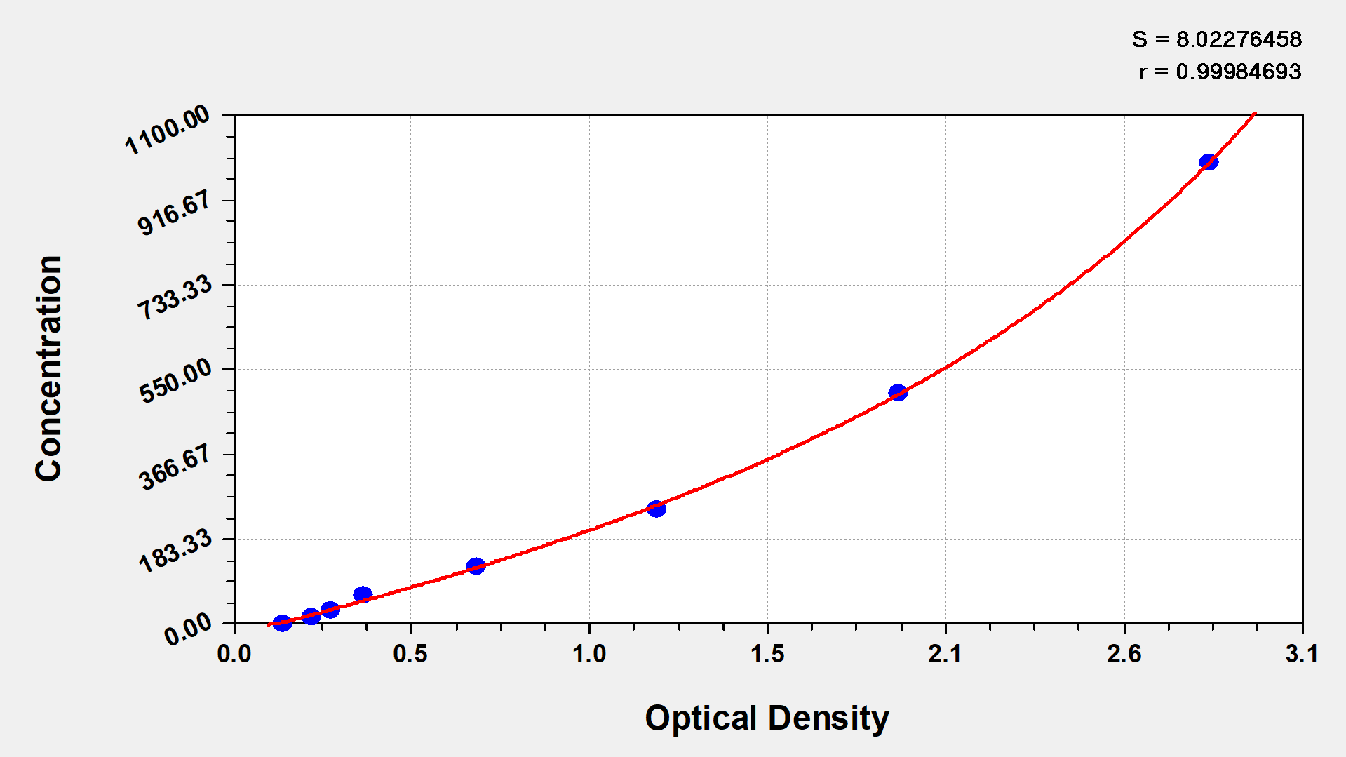 通過線性范圍來計(jì)算出實(shí)際的檢測(cè)樣本值,定量試劑盒標(biāo)準(zhǔn)曲線的相關(guān)系數(shù)R大于0.99。以CSB-E07270h(人脂聯(lián)素(ADP)ELISA Kit)為例的標(biāo)準(zhǔn)曲線。