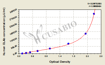 通過(guò)線性范圍來(lái)計(jì)算出實(shí)際的檢測(cè)樣本值,定量試劑盒標(biāo)準(zhǔn)曲線的相關(guān)系數(shù)R大于0.99。以CSB-E07270h(人脂聯(lián)素(ADP)ELISA Kit)為例的標(biāo)準(zhǔn)曲線。