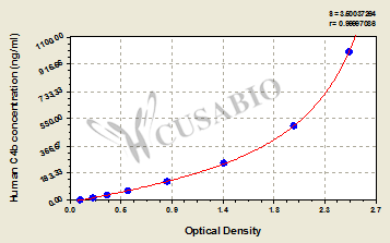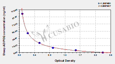通過線性范圍來計算出實際的檢測樣本值,定量試劑盒標準曲線的相關系數R大于0.99。以CSB-E07270h(人脂聯素(ADP)ELISA Kit)為例的標準曲線。