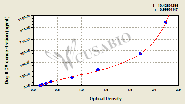 通過線性范圍來計(jì)算出實(shí)際的檢測(cè)樣本值,定量試劑盒標(biāo)準(zhǔn)曲線的相關(guān)系數(shù)R大于0.99。以CSB-E07270h(人脂聯(lián)素(ADP)ELISA Kit)為例的標(biāo)準(zhǔn)曲線。