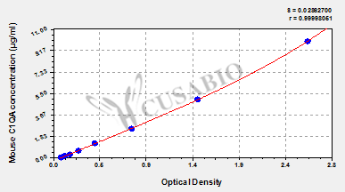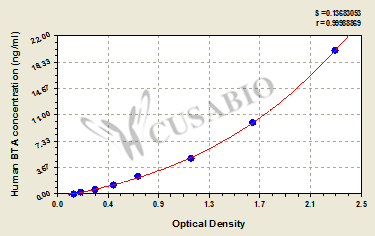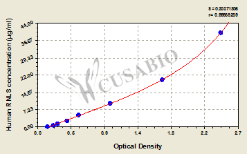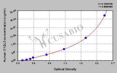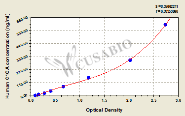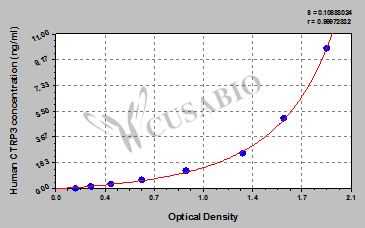 通過線性范圍來計算出實際的檢測樣本值,定量試劑盒標準曲線的相關(guān)系數(shù)R大于0.99。以CSB-E07270h(人脂聯(lián)素(ADP)ELISA Kit)為例的標準曲線。