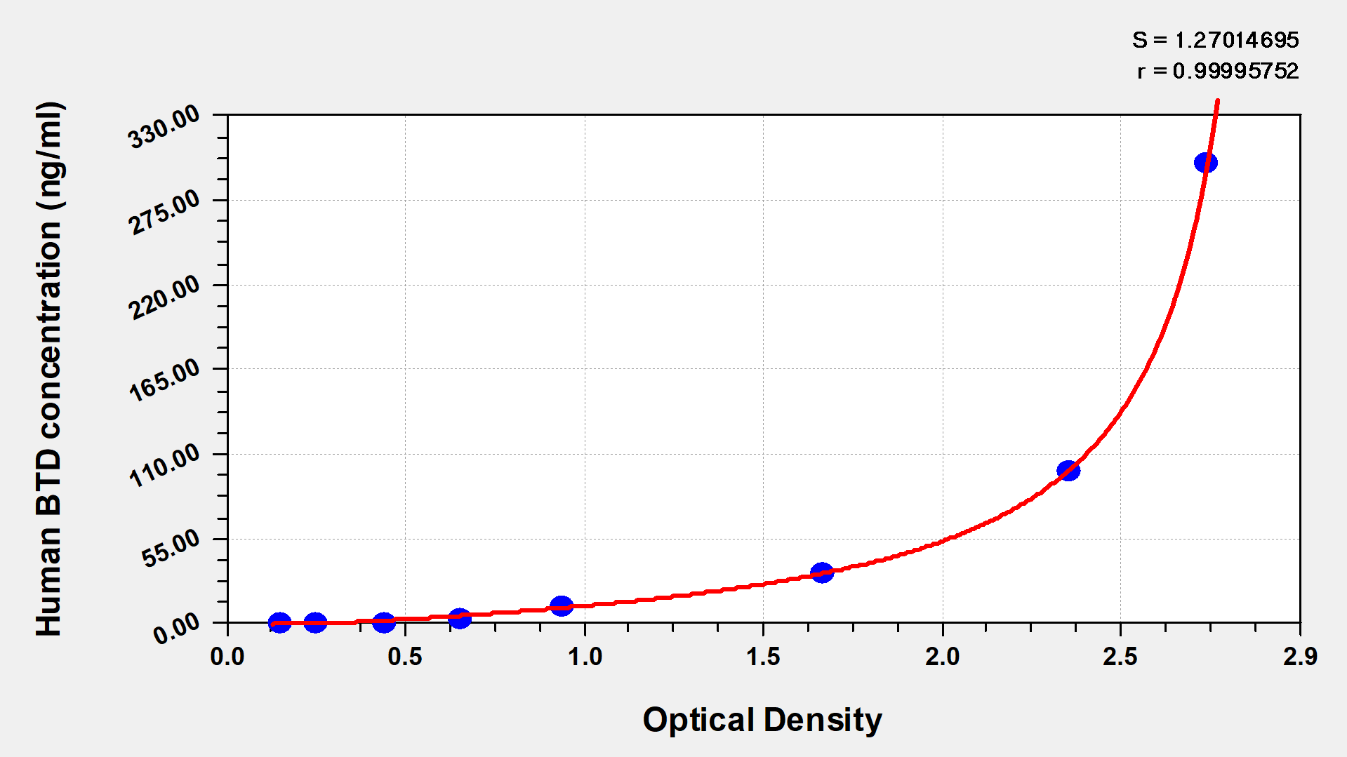 最低檢測限是靈敏度的測試指標。由使用的抗體效價等決定的,在研發(fā)過程中,一般會優(yōu)化保證高靈敏度、低背景的檢測結(jié)果從而大大提高試劑盒的靈敏度。檢測限越低,靈敏度越高。通過將零標準重復(fù)獲得的平均 O.D. 加上3個標準偏差來確定靈敏度。