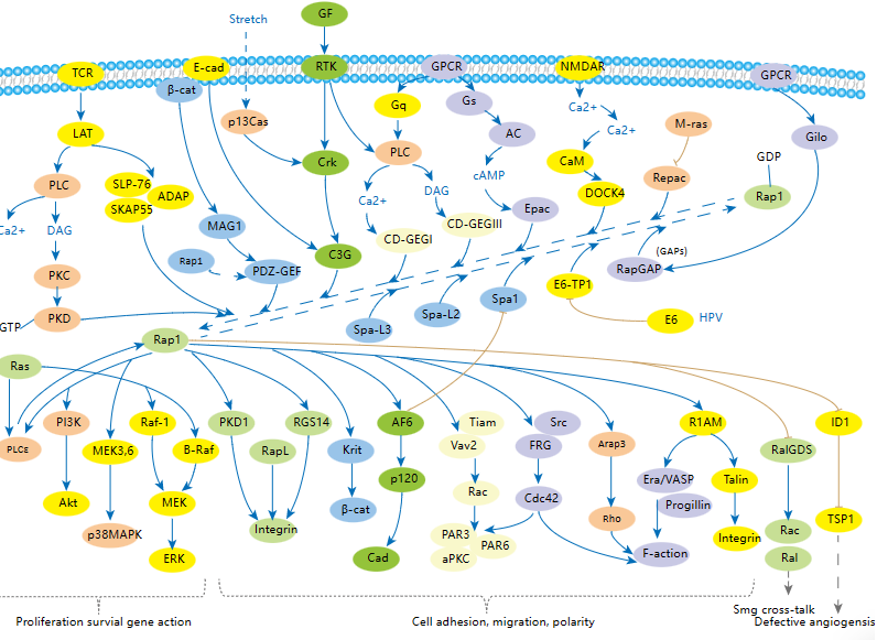 RAP1(Ras-related protein 1)廣泛存在于多種細胞中,并且在復雜的信號轉導網絡中扮演著重要的角色的小G蛋白。在細胞外刺激作用下,