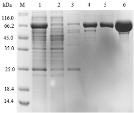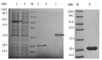 | 挑取單菌落進行小量誘導表達,SDS-PAGE電泳檢測,保種 | ||||